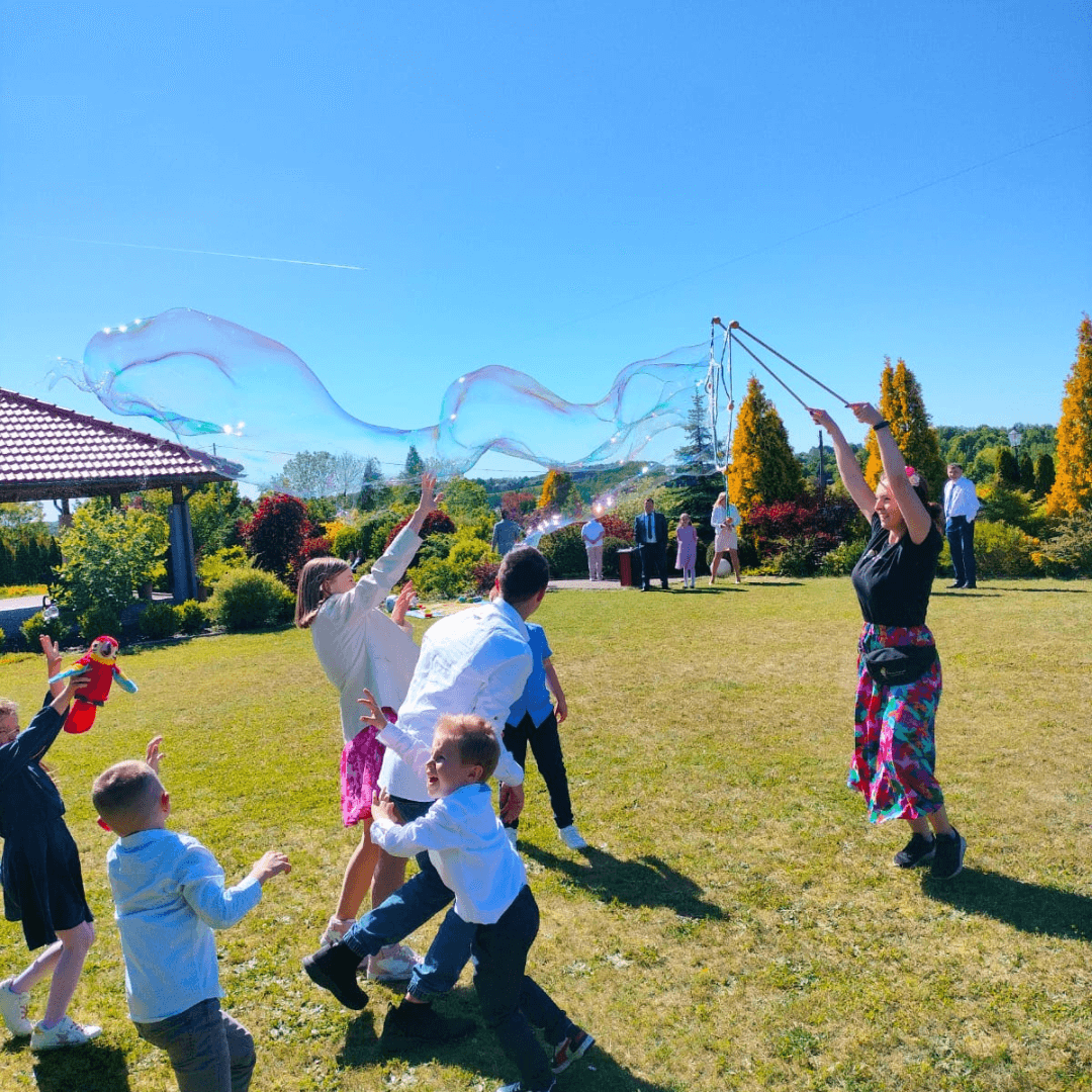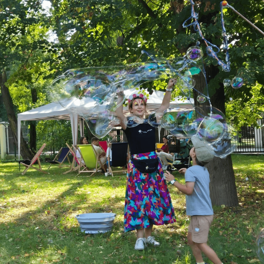 • Bańki mydlane XXL – pokaz i zabawa z gigantycznymi bańkami.